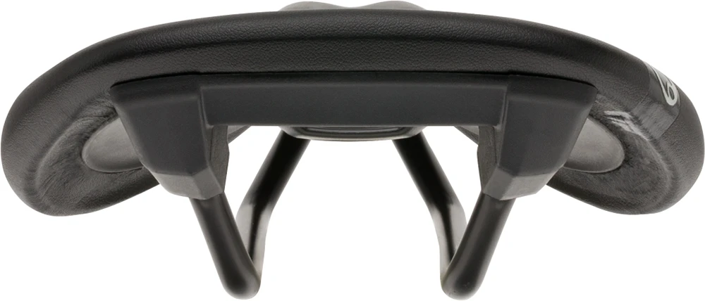 Grâce à l’approfondissement du canal de décharge avec découpe, la pression résultante est répartie uniformément sur les structures osseuses (os du siège et parties des lames pubiennes). La forme en Y permet de conserver une grande liberté de mouvement, même en position basse, typique du vélo de route.