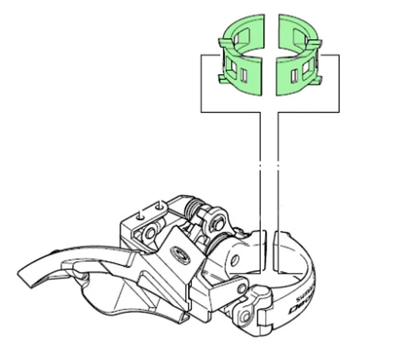 Douille de réduction Shimano pour le montage de dérailleurs arrière sur des tubes de selle de 28,6 mm de diamètre.